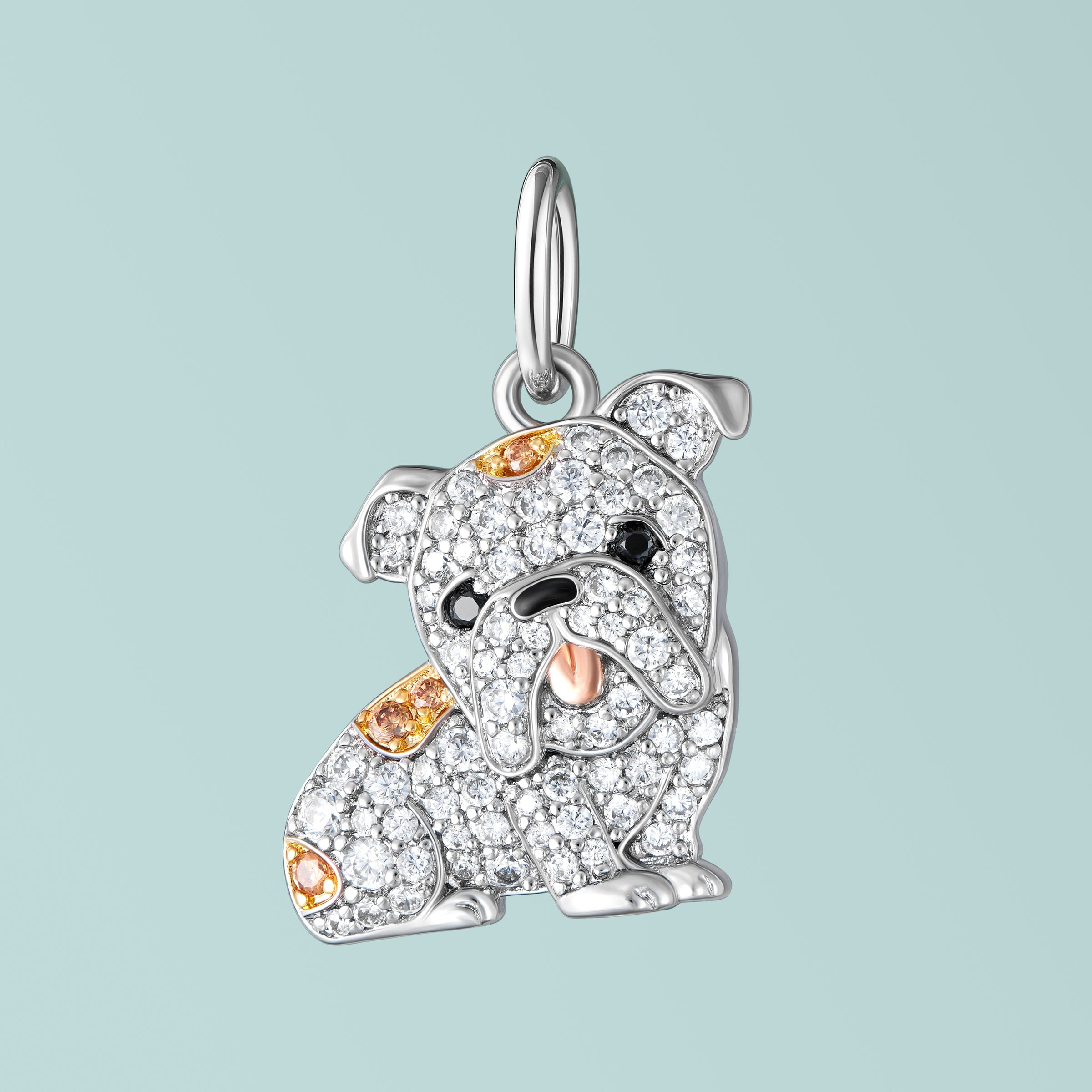 This charming sterling silver charm captures the unique personality of the beloved English Bulldog — thoughtfully crafted with sparkling hand‑set details for a meaningful, high‑quality keepsake. Whether clipped onto your bracelet, necklace chain, or carabiner link, it keeps your pup close in a stylish, heartfelt way.