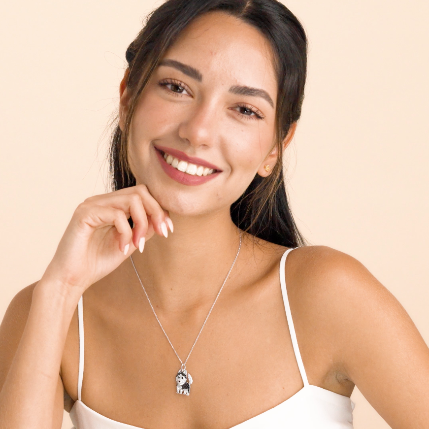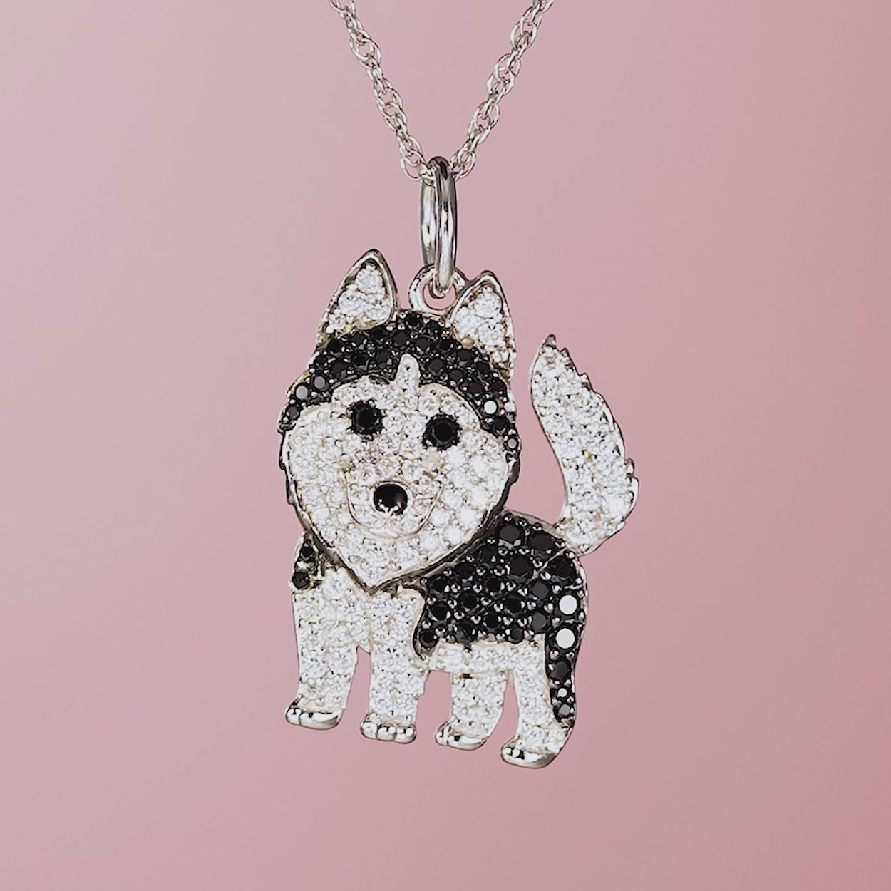 Who could resist that cute face? This adorable Siberian Husky Rhodium-Plated .925 Sterling Silver and Gunmetal 18” Pendant Necklace is utterly irresistible. The elegant black and white colors make this necklace the perfect accessory for a smart casual outfit or even something slightly dressier. The 18” rope chain also comes with a 2” extension, making this necklace even more flexible, while the lobster clasp keeps it securely in place.